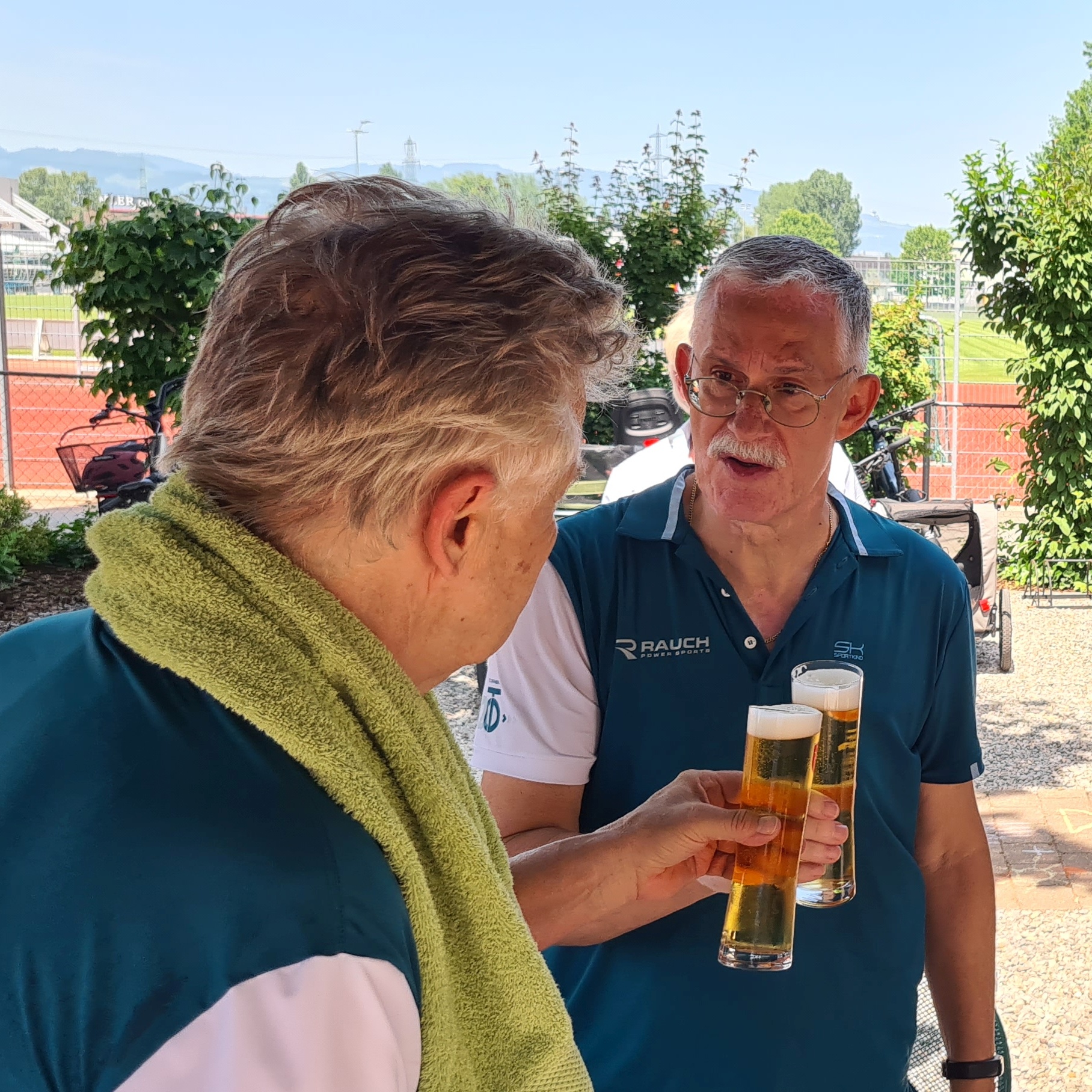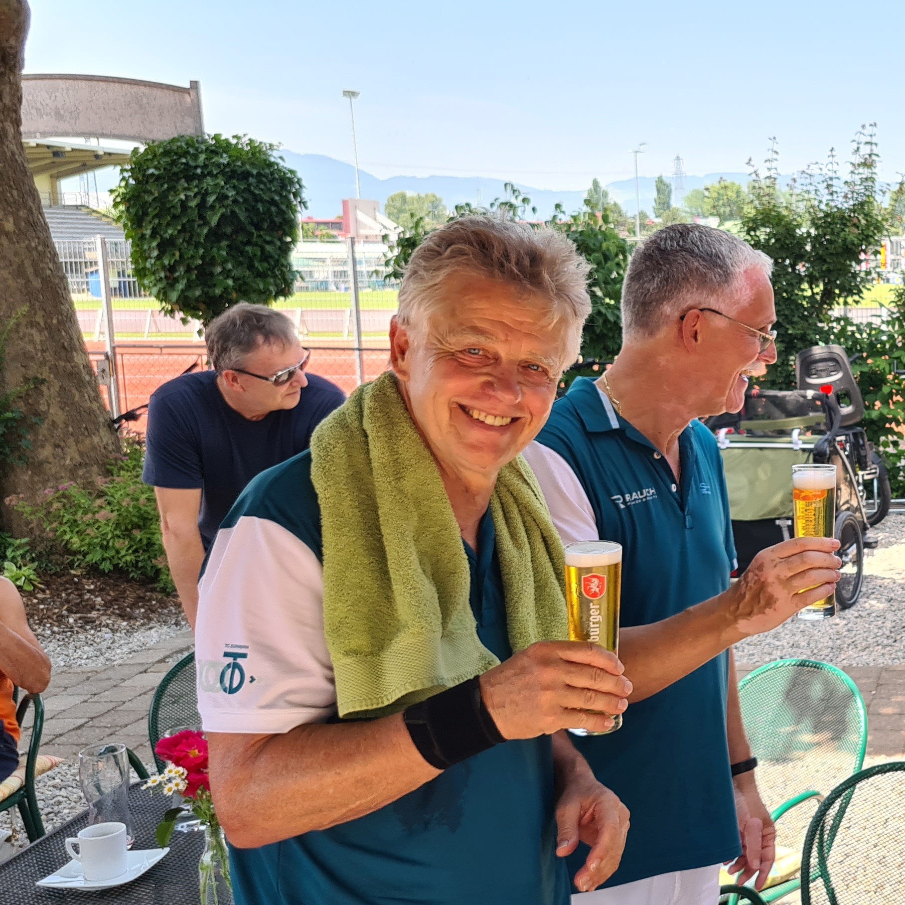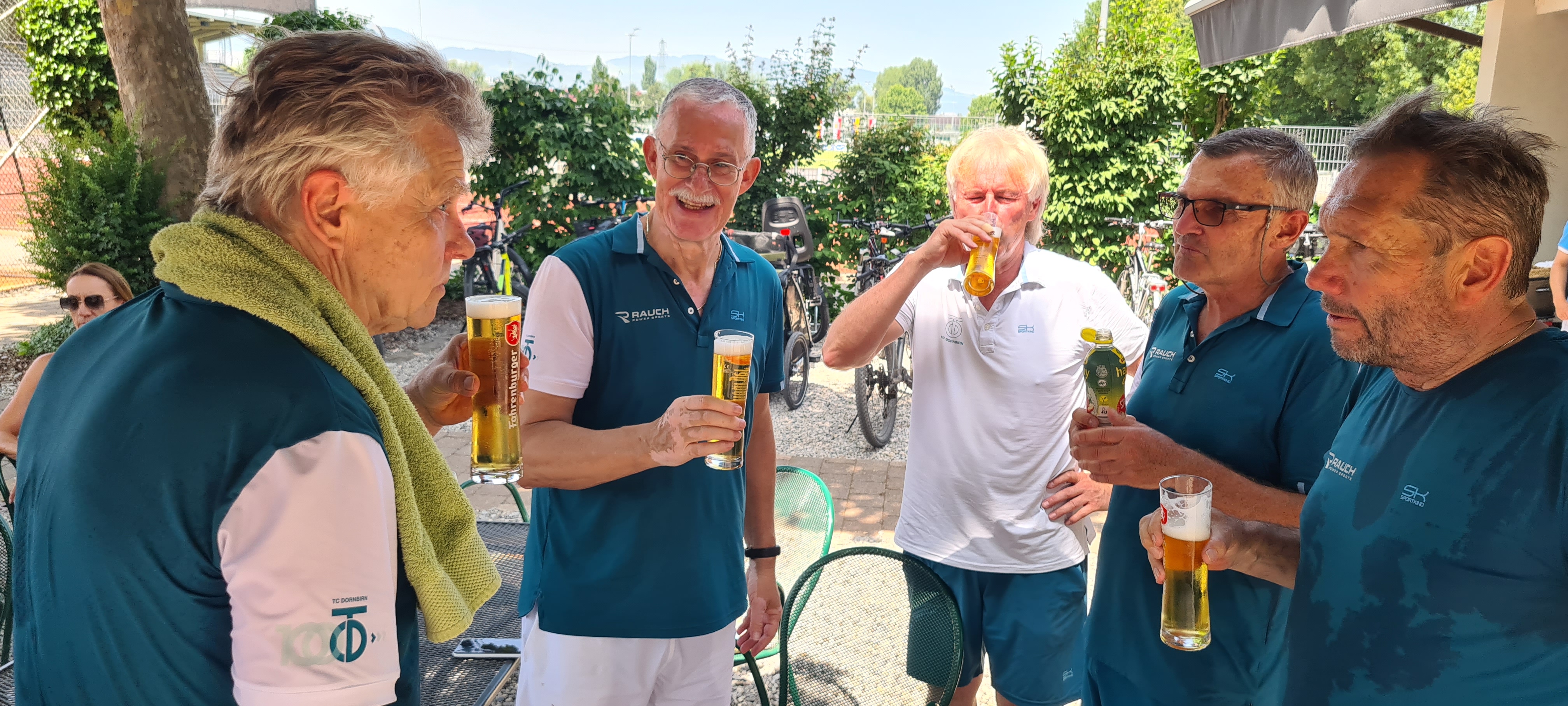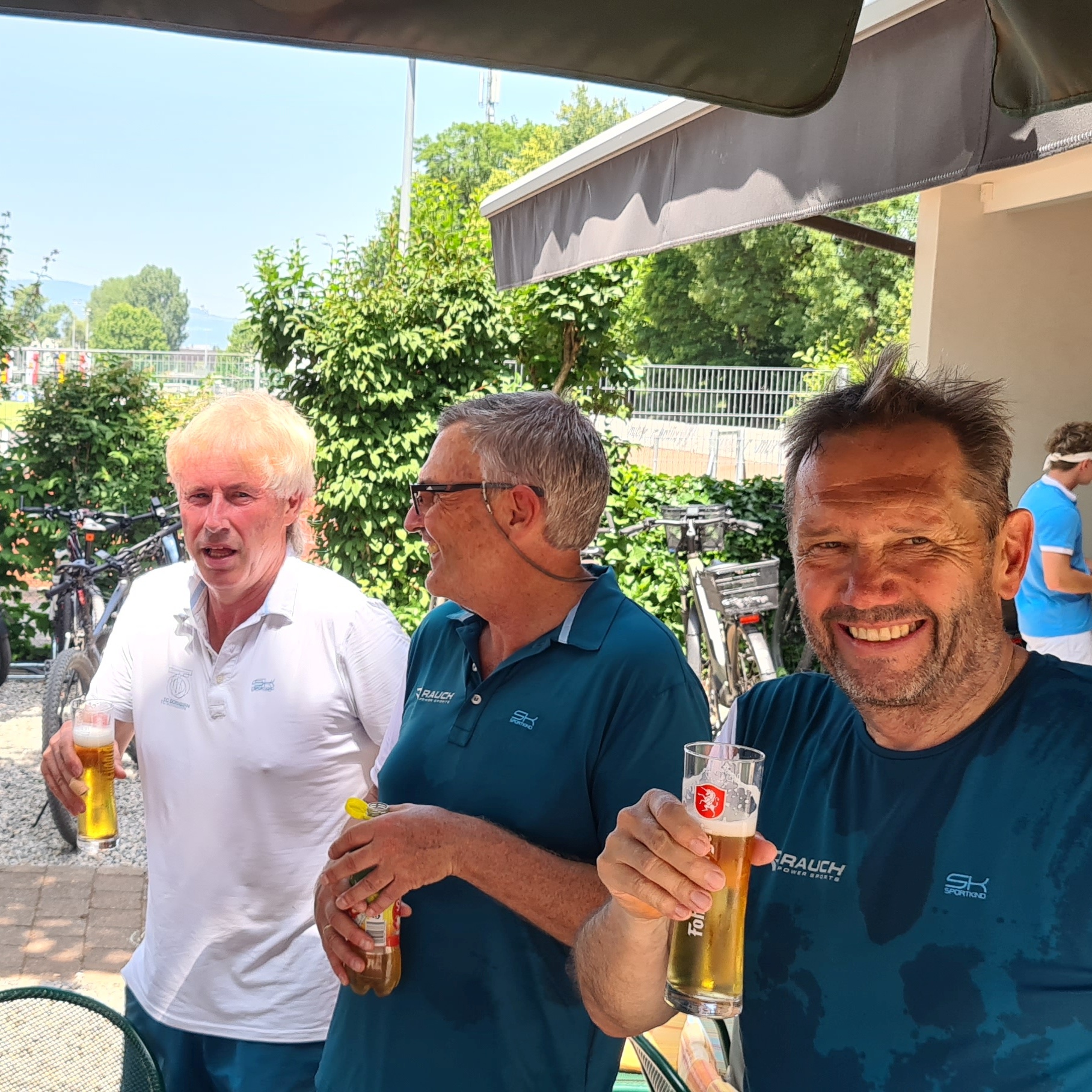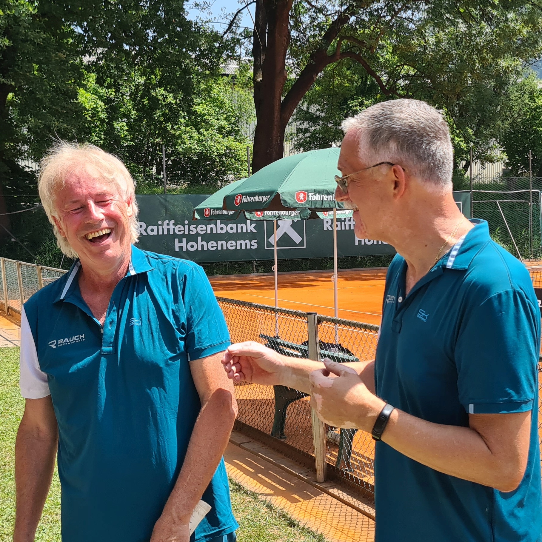 14.06.25 Titelverteidigung VMM 2025 - Fotos Wie schon 2024 konnten sich die Herren des TCD auch 2025 in einem entscheidenden "Finalspiel" duchsetzen, diesmal gegen den TC Hohenems. Damit beendeten wir die Saison 2025 ohne Niederlage und durften den Meistertitel in gelöster Stimmung feiern. Bei der Gelegenheit soll noch ausdrücklich erwähnt werden, dass wir bei allen Heim- und Auswärtsspielen auf ausnahmslos sehr faire, sportlich ambitionierte und absolut angenehme Klubs, Mannschaftsführer und Spieler getroffen sind! Neben der sportlichen Freude über hart erkämpfte Punke und Siege ist der gesellig-freundschaftliche Teil der Meisterschaft ja das, was uns am längsten in Erinnerung bleiben wird. Hier noch ein paar Eindrücke zur Erinnerung an den Gewinn der VMM 2025 (am 14.06.2025 in Hohenems).