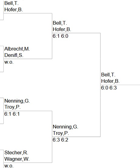 Die als Nummer 1 gesetzte Paarung mit Bernd Hofer/ Thomas Bell haben das Endspiel erwartungsgemäß in 2 Sätzen gewonnen.